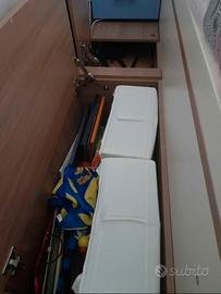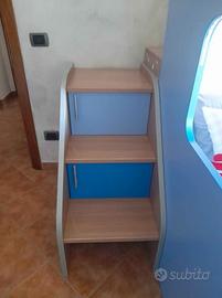 Ponte letto, corridoio contenitore, scaletta contenitore, letto inferiore contenitore, due comodini. Inclusi materassi ( uno nuovo).