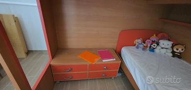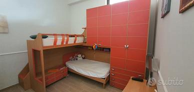 Cameretta Moretti Compact Soppalco ad angolo con due letti Misure m 3,50 x 2,10 con scala dietro, m 3 x 2,10 con scala avanti Disponibile a parte scrivania, sedia da rifoderare, cassettiera tre cassetti Sono esclusi i materassi e la rete