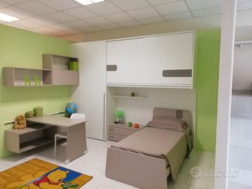 Cameretta ponte con armadio angolare, ponte scorrevole, scrittoio vasistas , letto ( escluso materasso ) . Come foto vendesi per rinnovo expo. Misure 335x245. Prezzo escluso trasporto e montaggio.