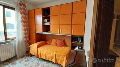 camera a ponte lettino compreso di rete a doghe e volendo con aggiunta di 25 € anche di materasso. in buonissime condizioni. Colore legno e ante arancioni. presenti all'interno causa smontaggii precedenti piccole scheggiatura , ma tutto più che decenti, impercettibili. Misure lungo 2,90 mt ;Profondo 55cm; alto 2,40/2,50 mt Smontaggio e ritiro a vostro carico