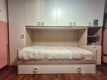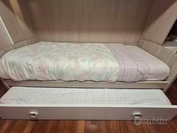 Vendo cameretta ponte sei ante , bicolore bianca e beige, con letto estraibile, compresa di due materassi.