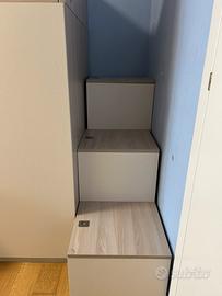 • Armadio grande, cassettoni sotto il letto basso e scaletta con gradini contenitore.