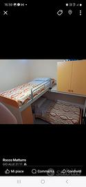 cameretta ben tenuta,2 letti con scala contenitore e due cassetti armadio sopra letto,➕️ armadio sotto,scrivania con mensola e armadio ➕️ armadio laterale e cassetti.struttura super forte.