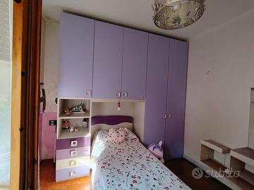 Vendo cameretta ragazza come in foto composta da armadio a ponte, letto, scrivania, sedia, pouf, lampadario e materasso. La camera è già smontata per cambio arredo Prezzo trattabile. Ritiro a carico acquirente