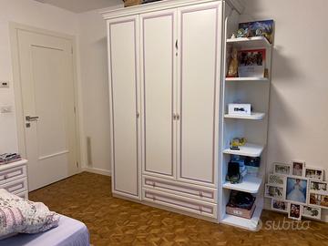 Montata due anni fa cedo per trasferimento. Acquistata nel 2022 per 5.300€ e montata nel 2023 da operai mobilieri é quasi nuova, con due, tre imperfezioni sulla sedia già presenti al montaggio. Armadio a due ante con due cassettoni e libreria laterale, letto a cassone, comodino, mobile per tv e tolettatura con tre cassettini e sedia. La camera è bianca con richiami color glicine come in foto. Prezzo leggermente trattabile.