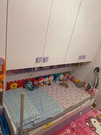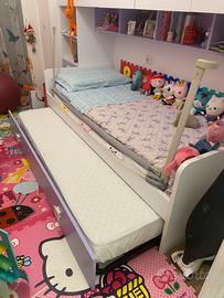 Vendo cameretta ragazza come nuova, nessun segno di usura praticamente perfetta. Letto estraibile con 2 materassi in lattice, quello inferiore mai usato. Sponde montate per esigenza ed estraibili. Acquistata nel 2021 da mondo convenienza a 1000 euro(fattura disponibile) vendo a 550 per cambio casa. Disponibile da fine agosto. Smontaggio e trasporto a carico dell acquirente.