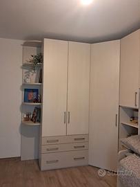 Vendo cameretta in faggio, ridipinta da poco, maniglie ante sostituite in acciaio cromato, usata ma in buonissime condizioni. Struttura a ponte, con cabina armadio capiente angolare e letto con cassetto estraibile con secondo letto a €2700. 4m× 2,40m. Cabina ad angolo 1m×1m. Disponibile da fine marzo. Smontaggio e ritiro a carico dell'acquirente.