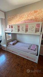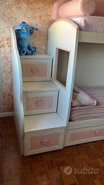 Come da foto vendo cameretta con letto a castello, due cassettoni sotto letto e con gradoni contenitori marca Giessegi. Smontaggio a cura dell’acquirente.