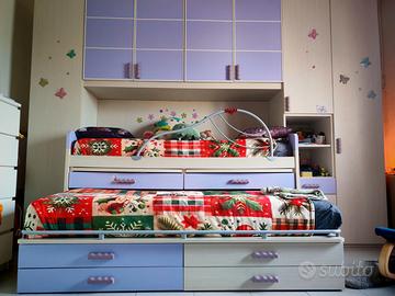 Cameretta ragazze con armadio a ponte doppio letto