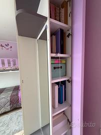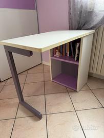 Cameretta con due letti a castello, ponte sospeso, comodini e scrivania come in foto