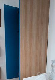 Vendesi cameretta per ragazzi con armadio a due ante + cassettiera interna, un armadio ponte due ante con laterale libreria (come da foto, purtroppo con la camera in fase di smontaggio), due letti singoli e mensola. No reti e materassi. La cameretta è già tutta smontata e imballata. Ottime condizioni (in un'anta dell'armadio, lateralmente, solo leggermente spizzicata, ma piccolissimo.)