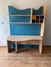 Arredo letto e scrivania per camera bambini ragazzi, mobilificio Righetti. Compreso di letto singolo con doghe. I moduli sono componibili secondo esigenze di spazio. Misure mobile letto: lunghezza 2 m, altezza 2,10 m. Misure mobile scrivania: lunghezza 1,55 m, altezza 2,10 m. I mobili si trovano già smontati al piano terra.