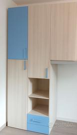 vendo cameretta ragazzi/bambini marca Moretti Compact, con misure h 2,46 m x 4 m, armadio capiente, profondità 60 cm e 103 cm dalla parte della scala, la scala a sportelli in ogni gradino. vendo senza materassi, struttura letto di sotto a parte.