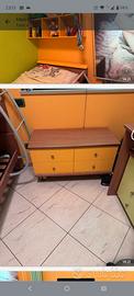 Camera completa di armadio, doppio letto, doppia scrivania, sedia, doppia cassettiera e mensole varie