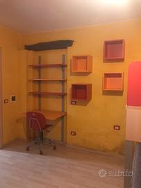 Vendo camera da letto per ragazzi completa di letto a castello , comodini, armadio, mensole, cubetti, scrivania , poltrona. Ottimo materiale . Materassi non inclusi