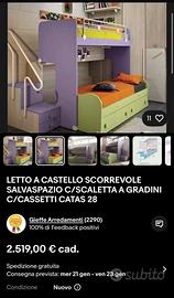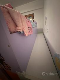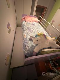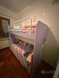Bellissima cameratta per bambine/ragazze con sistema di scarrellamento del letto superiore per agevolarne il rassetto quotidiano. I gradini che portano al “corridoio” superiore sono anche contenitori comodissimi per i giocattoli. La struttura é di qualità e molto robusta. Nell’ultima foto c’è il prezzo di riferimento attuale di una cameretta fac simile a quella in vendita. Smontaggo e trasporto a carico dell’acquirente. Prezzo affare considerato il costo iniziale. Le misure da chiuso sono 250x92 mentre aperto 250x121cm. Zona per il ritiro via casal del marmo