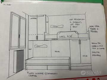Cameretta ragazzi marca Battistella, composta da due letti, armadi, libreria e scrivania con cassettiera. Prezzo trattabile