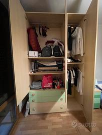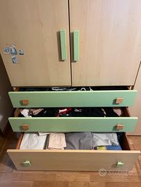 Regalo Mobile a 3 ante e 3 cassetti beige e verde, comodino e letto singolo. Smontaggio e trasporto a spese dell’acquirente
