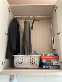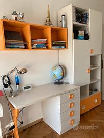 Cameretta ragazzi completa. In ottime condizioni. Letto singolo e secondo letto a scomparsa, materassi come nuovi soprattutto ospite. Scrivania quattro cassetti, mensola abbinata e libreria con ante e cassettoni. Molto comoda e versatile. Si può scomporre in ogni parte a seconda delle angolazioni della camera. Trasporto a carico dell’acquirente. 200€ trattabili