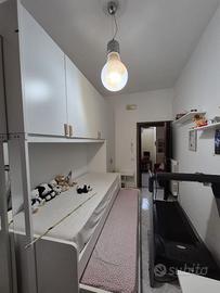 Cameretta artigianale , come nuova, usata pochissime volte . Colore bianco con cassettiera verde \arancio., 2 letti. Scrivania bianca con cassetti, blu\ ocra. Misure : Altezza mobile armadio 255cm, larghezza mobile armadio 90cm, lunghezza letti 200cm, lunghezza scrivania 148 cm, larghezza 60cm. Solo ritiro in zona.