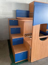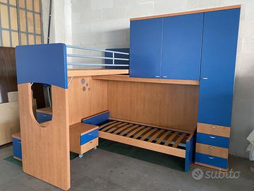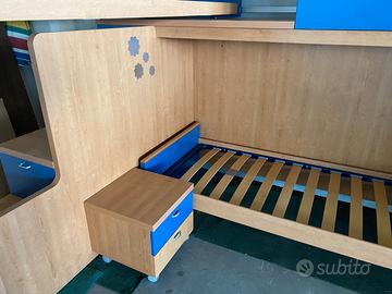 Cameretta ragazzi salvaspazio a ponte angolare con due posti letto,