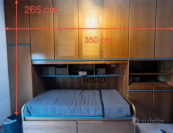 Armadio a ponte capiente che uniscono i due lati del letto singolo.