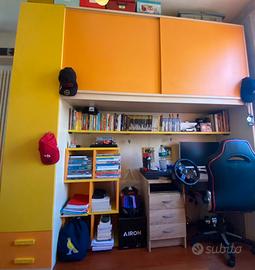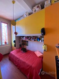 Vendo causa trasloco cameretta a ponte su due pareti praticamente nuova Ottima solidita’, senza difetti praticamente nuova. Lettino, libreria e mensole comprese. Smontaggio e ritiro in loco a carico dell’acquirente