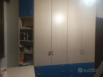 vendo cameretta usata molto poco completa di letto a castello con scaletta, comodino e cassettiera e mensole +, armadio 4 ante e 8 cassetti + colonna angolare