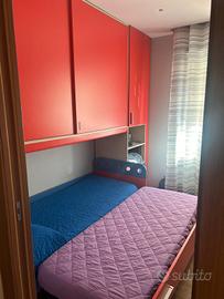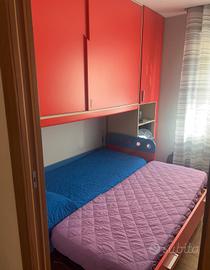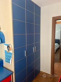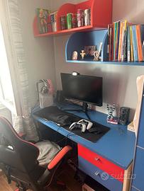 vendo cameretta ragazzo compreso di scrivania, letto a cassettone e armadio a tre ante .Colore rosso e blu