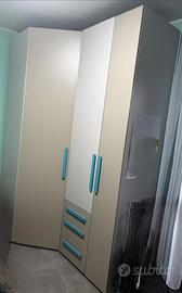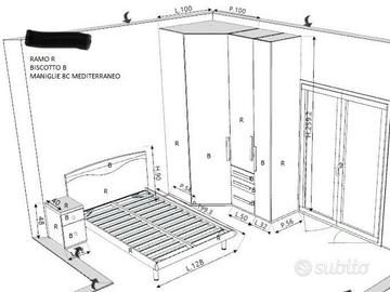 Cameretta con letto ad una piazza e mezza, armadio con cabina armadio, comodino con doppio cassetto, libreria, mensola con due cubotti, scrivania con cassettiera. Allego anche il progetto così da vedere tutte le misure. La Cameretta ha 6 anni ed è ben tenuta.