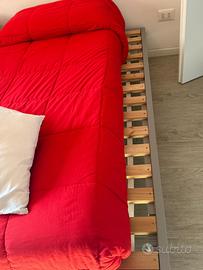 Vendo cameretta composta da: - Armadio Ikea grigio e bianco in ottimo stato (altezza 220 cm x larghezza 220 cm): euro 290 se acquistato singolarmente - Coppia di lettini in legno Maison du monde in ottimo stato cm 190 x 90 cm a euro 70 ciascuno - scrivania in legno e metallo maison du monde cm 126 x 60 + sedia in discreto stato (hanno entrambe qualche segno) vendo a euro 70. Se interessati posso vendere tutto in blocco a euro 450 (anziche 500). I prezzi non sono trattabili, non risponderò a offerte al ribasso. Non spedisco, non scambio. Merce disponibile dal 25 aprile (perché cambio casa)