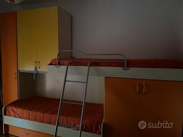 Vendo cameretta in perfette condizioni lunghezza 330x240 con 3 letti i materassi non sono inclusi.