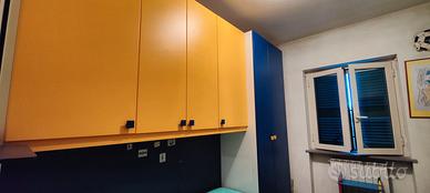 Vendo cameretta per bambino, composizione a ponte. Armadio con 6 sportelli, letto, scrivania, settimino, cassettiera da 4 e mensole coordinate. Siamo a 40 minuti da Roma, autostrada uscita Ferentino.