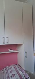 Armadio a ponte con letto e materasso + rete sotto letto che si alza al pari dell’altro. 2 cubotti libreria.