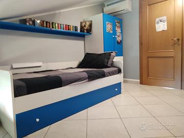 Armadio scorrevole h 1,80 largo 1,80 profondo 65 cm il letto 190 cm per 80 e l’altro l’armadio con i cassetti 170 h largo 80 cm e profondo 62 cm ha un doppio letto e delle mensoline tutto fatto su misura dal falegname