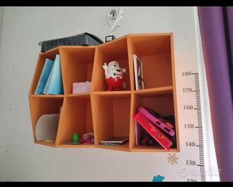 vendo cameretta per bambini, comprensivo di libreria arancione che vedete nelle foto, letto a una piazza e mezzo con rete e materasso da 190x140.