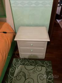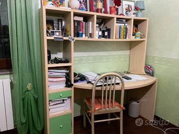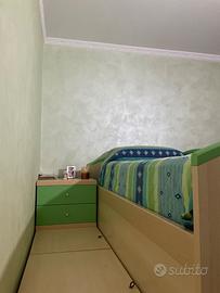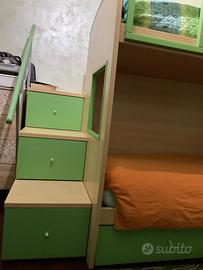 Cameretta completa in ottime condizioni, ideale per bambini/ragazzi. Usata con cura, struttura solida e perfettamente funzionante. La camera è composta da 2 letti singoli ad una piazza, da vari scompartimenti sotto il letto inferiore, nelle scale e nel pavimento del letto superiore, sono presenti 2 comodini, uno con 2 cassetti e uno con 3. Inoltre la camera è costituita di una scrivania in ottime condizioni, con 8 scompartimenti e 2 casetti.