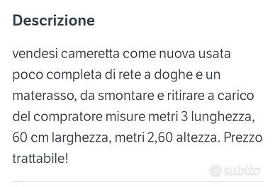 vendo cameretta come da foto come nuova Smontaggio e trasporto a carico di chi compra. NO SPEDIZIONE