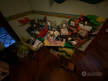 Cameretta per bambini in perfette condizioni, come nuova di colore giallo e verde. Letto a castello ‘nuvola’ con.scala laterale con cassetti porta oggetti/giocattoli e con corridoio di camminamento dietro al letto. Scrivania con sedia e due mensole, armadio ad un’anta e due scaffalature/librerie. Disponibilita di altre foto. Un vero affare!!!
