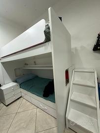 Vendo cameretta a castello in ottime condizioni, ideale per bambini/ragazzi e perfetta per ottimizzare gli spazi. Struttura solida in legno colore bianco, dal design moderno e lineare.