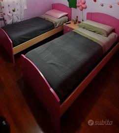 Cameretta composta da: Armadio 4 ante con cassettiera cm 185x60x240h c.ca 2 letti singoli cm 80x200x65h c.ca 2 reti a doghe coppia mensole con reggimensola comodino