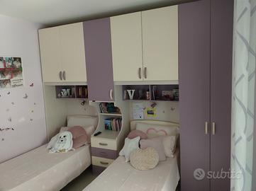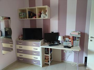 cameretta a soppalco come nuova. struttura letti 2,30 m, cassettiera 1,20 m e scrivania abbinata.