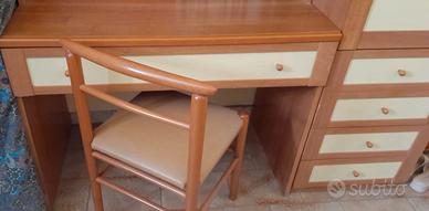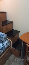Cameretta in ottimo stato munita di 3 letti, letto a castello con scalini ( capienti contenitori ) + un altro letto a cassetto che si sfila come da foto, e una scrivania con sedia... In regalo termosifone elettrico