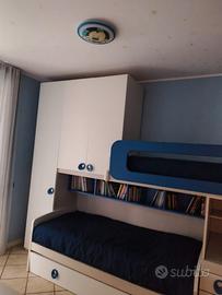Cameretta salva spazio con 3 posti letto, una grande scrivania estraibile e armadi. Vendo comprensiva di 3 ottimi materassi praticamente nuovi, perché i miei bimbi sono piccoli e non c'hanno mai dormito. Lunghezza 3,5 metri. Contattarmi per misure precise. Ritiro della cameretta intorno a seconda metà di luglio a Sesto Calende VA. Vendo causa trasloco.