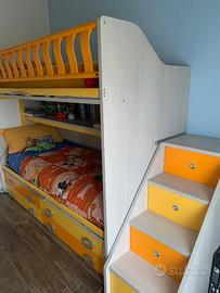 Cameretta usata poco perché ci siamo trasferiti in una casa più grande. I letti sono estraibili. Quello in alto se viene estratto c’è un corridoio. Marca: Moretti compact.