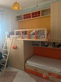 Vendesi cameretta salvaspazio a soppalco con due letti e 5 ante, librerie, cassettiera e scaletta, colore acero e arancione. Misura in lughezza 3,50 metri. No perditempo. Smontaggio, montaggio e trasporto a carico dell’acquirente. Richiesti 400 euro trattabili, la cameretta è im buono stato.