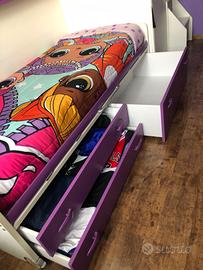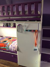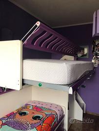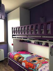 Vendo cameretta a ponte in perfette condizioni con letto estraibile x il riordino facilitato scale x accedere al piano superiore con cassetti capienticomprata da mobilificio MORETTI verniciata con colori ad acqua no nocivi x la saluteno CONFORAMA no mondo convenienza possibilità di acquisto anche di libreria in tinta con la cameretta.