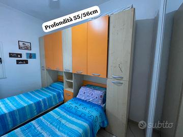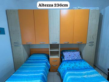 Vendo cameretta composta di due lettini con reti.Cameretta in buon stato,presenta solo 2 pannelli posteriori leggermente staccati.Smontaggio e trasporto a vostro carico.Per ulteriori informazioni e foto in privato