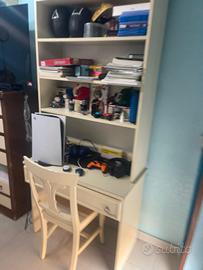 Cameretta a ponte2,40 x 2,85avorio con pomelli ni anche cambiabili per renderla adatta non solo a maschietti ma anche a femminuccia Scrivania a libreria2 m x 92 avorio completa di sedia In più regalo due mensole 80x25cme un lampadario