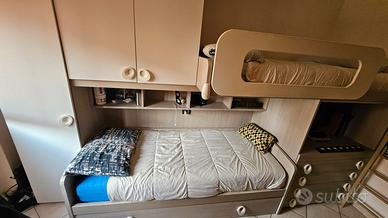 Vendo cameretta in buono stato. dotata di 3 letti una piazza di cui uno estraibile. La cameretta e dotata piccola scrivania estraibile, piu cassettiera e mobili con ante. Lunghezza: 3 metri e 50 cm . Più 2 scrivanie da 1 metro e 10 cm. l'una. LA CAMERETTA È DISPONIBILE PER IL RITIRO NEI SEGUENTI GIORNI : 26-27-28-29 Aprile. NON SPEDISCO DA PROVVEDERE AUTONOMENTE PER LO SMONTAGGIO E TRASPORTO. Prezzo Trattabile